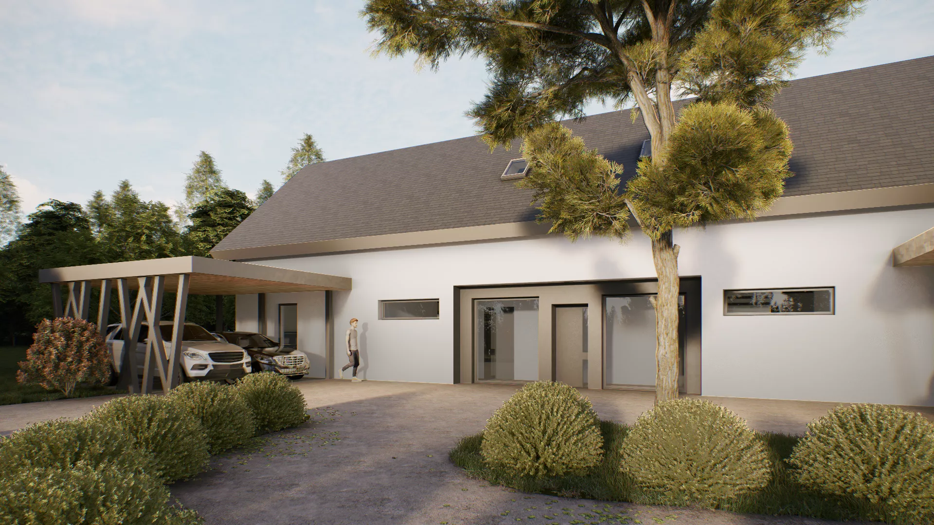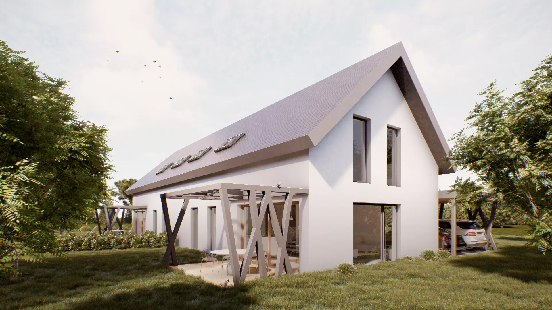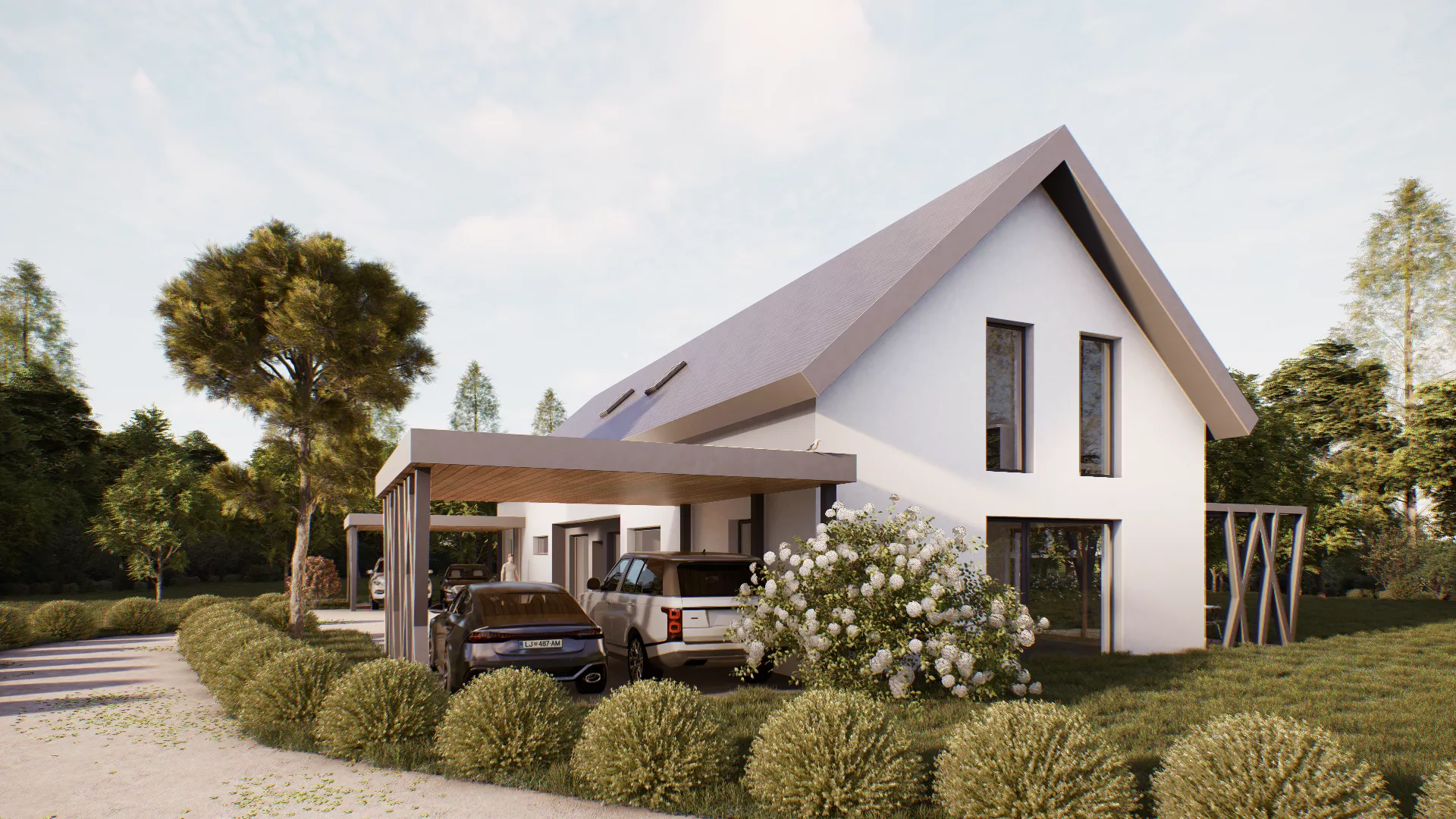 Dodatno bo zgrajen tudi NADSTREŠEK ZA DVA AVTOMOBILA kvadrature 33 m2.